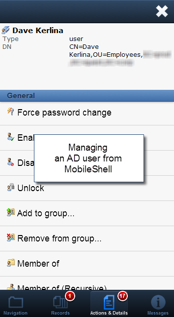 PowerGUI Pro 3.0 changes all of that, by including a new management interface for MobileShell that is based on PowerPacks (in case you don’t know already, PowerPacks are extensions for the PowerGUI Administrative Console that provide a management experience much like MMC, but that are driven entirely by Windows PowerShell commands and scripts).  With 3.0 we’ve provided a new mobile interface for MobileShell that allows you to use PowerPacks associated with your AD user account or groups that you are a member of from your mobile device!  Also, we’ve made the management experience even more responsive at the same time, so now you can do more with MobileShell and it will do it more quickly than before!  All you need is a mobile device with a WebKit-enabled web browser (sorry, that means no BlackBerry 5.x or Windows Phone 7 support for now).