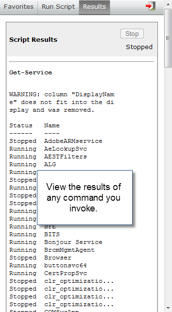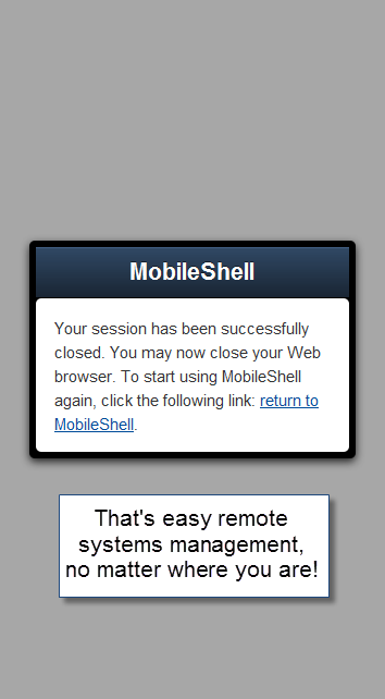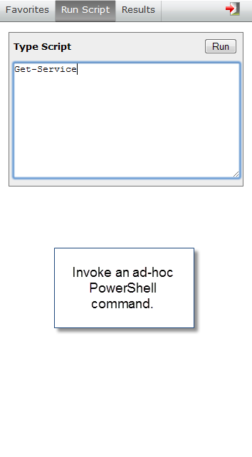 In case you missed the announcement last Friday, PowerGUI Pro 3.0 was released to the web.  With this release we included a new feature that I’m really excited about: Mobile Systems Management Using MobileShell.  We’ve had MobileShell for quite a while, but prior to this release you could only use it to invoke your favorite scripts or commands from modules associated with your user account as well as ad hoc commands you wanted to run.  Here’s a screenshot tour showing you what this interface would look like on a handheld device: